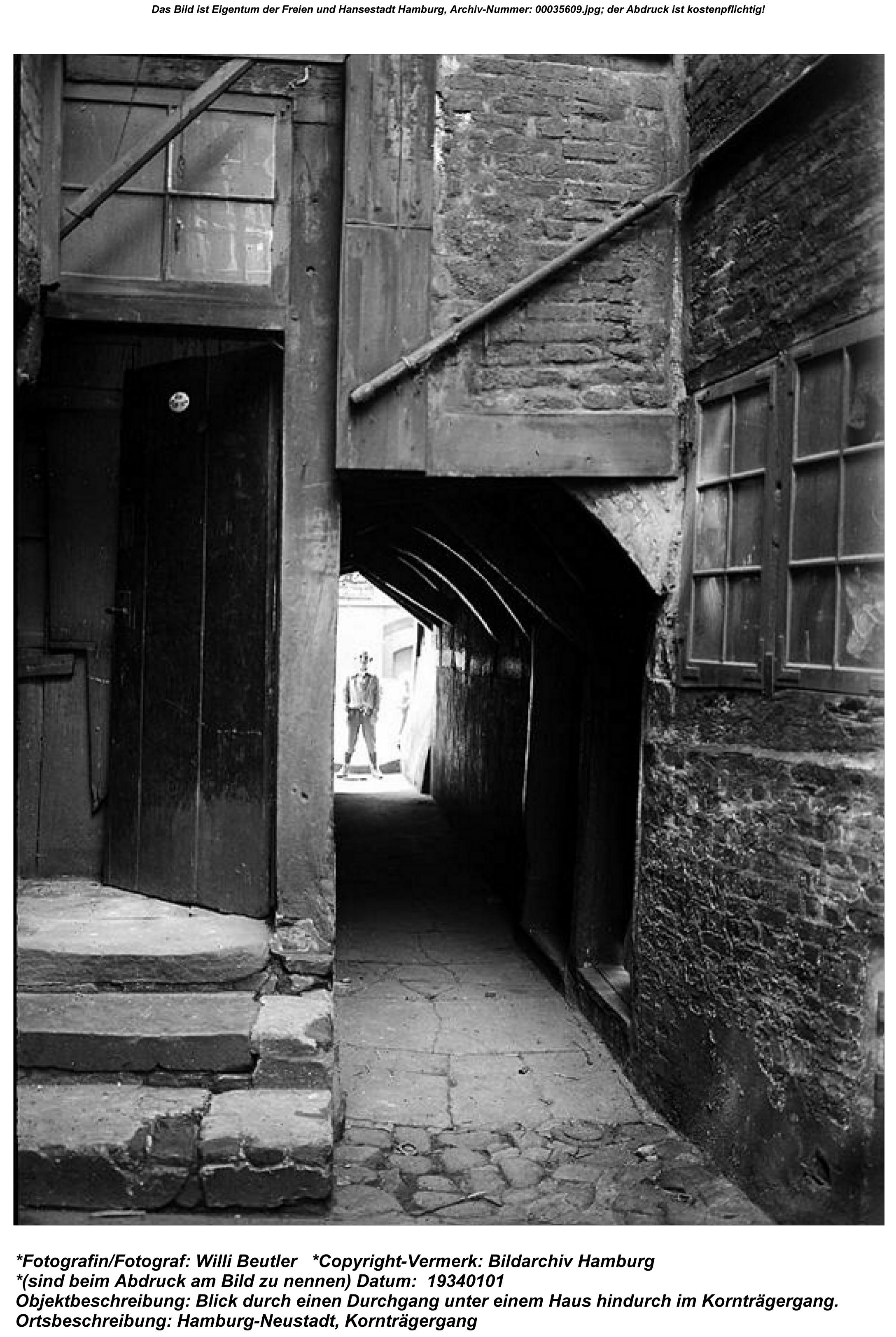 Contrary to the rest of Germany, the city of Hamburg handled street prostitution and brothels in a relatively relaxed manner. Many streets in the Alt- and Neustadt had at least one brothel, some a dozen or more. The Ebräergang became known as Ehebrechergang (Adulterer Street), due to its many establishments. In the Speckstraße, which is also a part of the contemporary Gängeviertel, 16 brothels and 65 prostitutes shared the street with 150 families and 220 children in 1883. The immediate proximity of inhabitants and prostitutes regularly triggered concerns over the lack of morals in the Gängeviertel. Nevertheless, the red-light district proved surprisingly durable in Hamburg’s inner city and only in the 1950s, when the Ulricusstraße was demolished to construct the Unilever-skyscraper, the last parts of it left the city center.