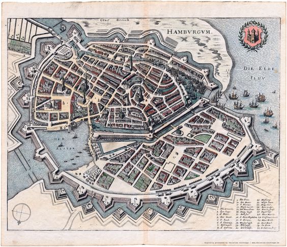 Already in the 16 th century, Hamburg’s 40,000 inhabitants made it one of Europe's biggest cities. The strong new city walls, constructed between 1616 and 1628, encircled the area of the contemporary Alt- and Neustadt and can be traced following street names such as Holstenwall, Gorch-Fock-Wall, Millerntor, and Dammtor (“–tor” designating the gates in the wall).