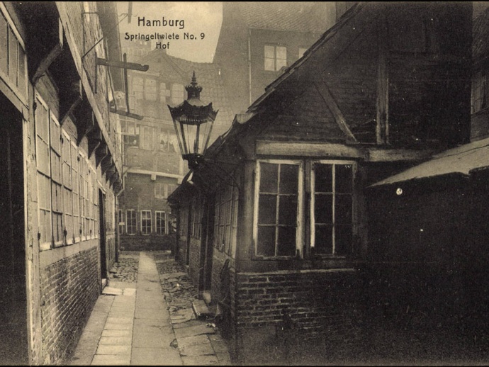 The occupation by Napoleon’s troops in 1811 had damaging effects on Hamburg’s economic and population growth. Nevertheless, Hamburg grew to 200,000 inhabitants by the middle of the 20 th century. Many of the new citizens were housed in the narrow, maze-like neighborhoods of the Alt- and Neustadt. One-story houses, which had been built quite chaotically into former courtyards, were now topped up to house a steadily increasing number of people. In this way the “Gänge” (passages) were created, which gave these neighborhoods their name. Gängeviertel were not only found in Hamburg but also, for example, in Lübeck or Kiel.
