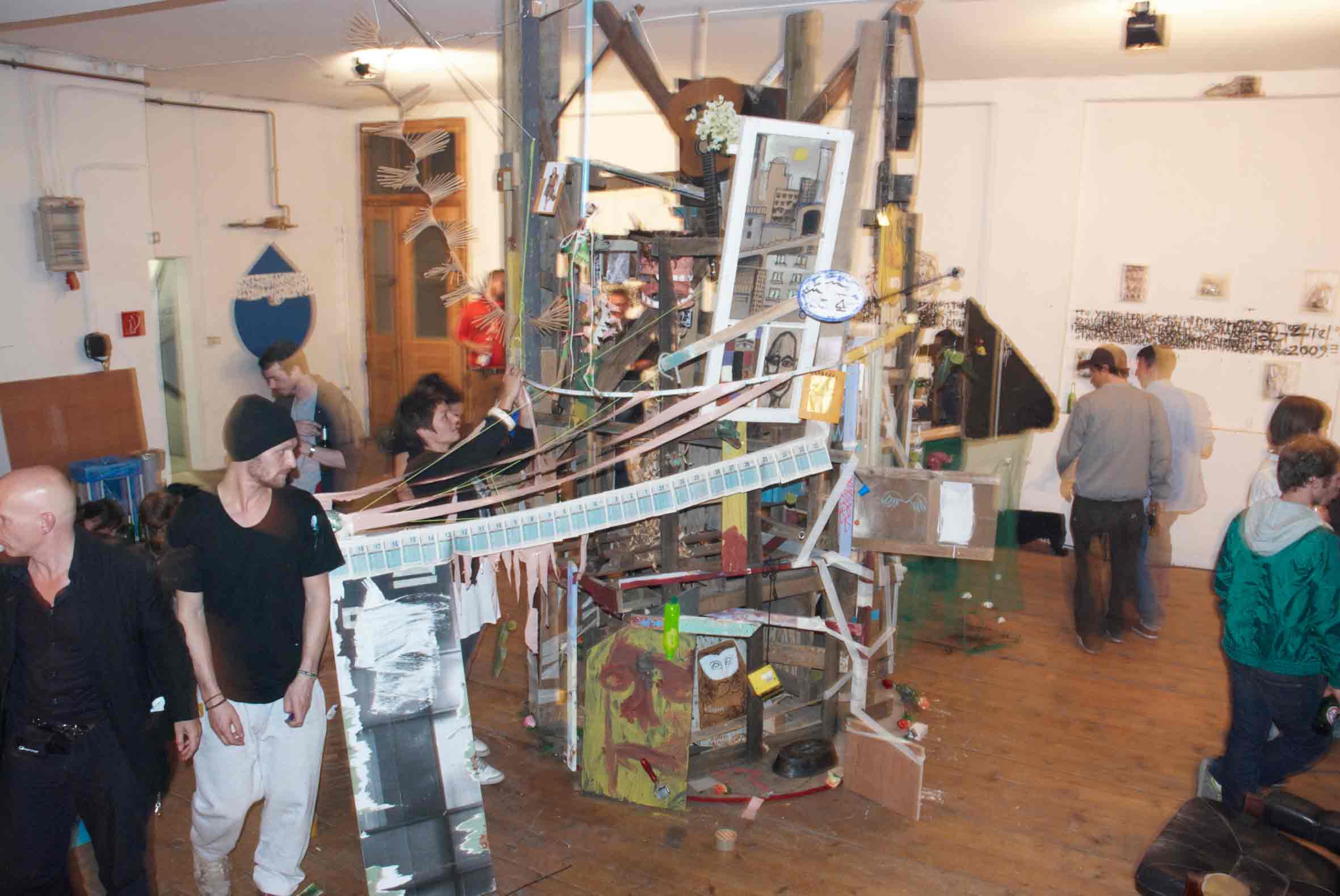 Since January 2009, a group of artists and activists had started to meet in the Kaschemme, an illegal bar in the Gängeviertel, to discuss what to do with the large, empty area. The Kaschemme itself was an art project – there was music (but no techno), cold beer and a counter which went until 1000 guests, which was the closing-mark for the establishment. The result of the meetings of the so-called “cell” was a festival, which was to take place at the end of August. Weeks before, red dots, spread throughout the city, announced the event. On the weekend of the 22 nd of August 2009, thousands of visitors came to the Gängeviertel to see art, music, and discussions in the open houses, thereby participating in the occupation. Surprisingly, the activists weren’t directly evicted by the police, (as it is common in Hamburg when private property is seen as threatened), but were still around on Monday, when the negotiations with the senate started.
